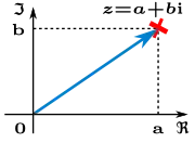 Los números complejos, designados con la notación , son una extensión de los números reales y forman un cuerpo algebraicamente cerrado.[1] Entre ambos conjuntos de números se cumple que , es decir: está estrictamente contenido en . Los números complejos incluyen todas las raíces de los polinomios, a diferencia de los reales. Todo número complejo puede representarse como la suma de un número real y un número imaginario (que es un múltiplo real de la unidad imaginaria, que se indica con la letra i, o en forma polar).