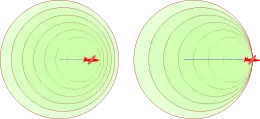 donde r es la distancia al centro emisor de la onda, y c es la velocidad de propagación de la onda. Para una onda de período bien definido y en ese caso la solución de la ecuación, a grandes distancias de la fuente emisora se puede escribir como: