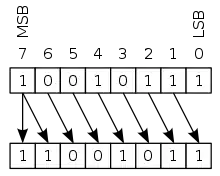 Otra forma de desplazamiento es el desplazamiento circular o rotación de bits. En esta operación, los bits de un registro son “rotados” de una manera circular como si los extremos izquierdo y derecho del registro estuvieran conectados. En la rotación hacia la izquierda, el bit que sale por el extremo izquierdo entrará por el extremo derecho, y viceversa con la rotación hacia la derecha. Esta operación es útil si es necesario conservar todos los bits existentes, y es frecuentemente usada en criptografía digital.