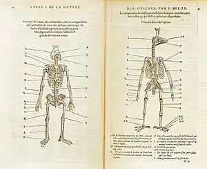 Numerosos eruditos alemanes y franceses compilaron los viejos trabajos y realizaron nuevos descubrimientos sobre las aves. Entre estos se incluye Guillaume Rondelet que escribió acerca de sus observaciones en el Mediterráneo; y Pierre Belon que describió los peces y aves que había visto en Francia y el Levante mediterráneo. Su obra L'Histoire de la nature des oyseaux contiene descripciones de cerca de doscientas especies. Su comparación entre el esqueleto de los humanos y de las aves es considerada un hito en la evolución de la anatomía comparada.[20] Volcher Coiter (1534-1576), un anatomista neerlandés, hizo estudios detallados de la estructura interna de las aves y realizó una clasificación de las aves, De Diferentiis Avium (en torno a 1572), que se basaba en criterios de estructura y hábitos.[21] Konrad Gesner escribió las obras Vogelbuch e Icones avium omnium alrededor de 1557. Como Gesner, Ulisse Aldrovandi, un naturalista, publicó entre 1599 y 1603 una obra de 14 volúmenes sobre historia natural, de los que tres de ellos eran sobre aves. Su Ornithologiae sola tiene más de 2000 páginas e incluye aspectos como la cría de gallinas y otras aves de corral.[22][23] La obra de William Turner Historia Avium ("Historia de las Aves") publicada en Colonia en 1544 fue uno de los primeros trabajos ornitológicos ingleses. Advirtió lo frecuente de los milanos reales en las ciudades inglesas, donde arrebataban la comida de las manos de los niños. Trató creencias populares como la de los pescadores que creían que las águilas pescadoras acababan con sus bancos de peces, por lo que buscaban matarlas mezclando en sus cebos la carne de las águilas.[20]