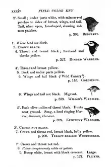 Otro de los mayores cambios, fue el crecimiento de la publicación de las guías de campo para la identificación de las aves. Las primeras guías eran grandes y pesadas; y estaban centradas principalmente en la identificación de especies en mano. Una de las primeras guías de nueva generación fue la realizada por Florence Merriam en 1887, titulada Hints to Audubon Workers:Fifty Birds and How to Know Them (Pistas para los trabajadores de Audubon: cincuenta aves y cómo conocerlas).[35]
