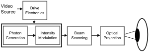 Sólo recientemente un número de desarrollos ha hecho un verdadero VRD el sistema práctico. En particular el desarrollo de LEDs de alto brillo ha hecho las pantallas bastante brillantes para ser utilizadas durante el día, y la óptica adaptive pan permitido corregir dinámicamente irregularidades en el ojo (a pesar de que esto no es siempre necesario). El resultado es una pantalla de alta resolución con una excelente gama de color y con un brillo mejor que las tecnologías televisivas.