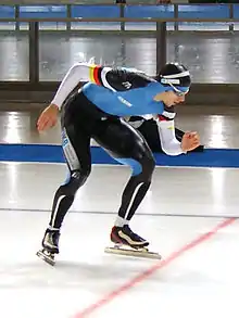 Patinaje de velocidad sobre hielo es un deporte que consiste en carreras de varias distancias sobre una pista de hielo con forma alargada y en la que los competidores van provistos de patines.[1]