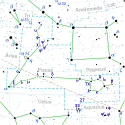 - 35 Piscium (UU Piscium, 35 Psc), binaria cercana y variable elipsoidal rotante.