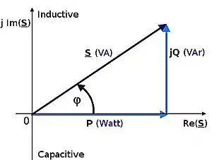La potencia compleja de un circuito eléctrico de corriente alterna (cuya magnitud se conoce como potencia aparente y se identifica con la letra S), es la suma (vectorial) de la potencia que disipa dicho circuito y se transforma en calor o trabajo (conocida como potencia promedio, activa o real, que se designa con la letra P y se mide en vatios (W)) y la potencia utilizada para la formación de los campos eléctrico y magnético de sus componentes, que fluctuará entre estos componentes y la fuente de energía (conocida como potencia reactiva, que se identifica con la letra Q y se mide en voltiamperios reactivos (var)). Esto significa que la potencia aparente representa la potencia total desarrollada en un circuito con impedancia Z. La relación entre todas las potencias aludidas es: