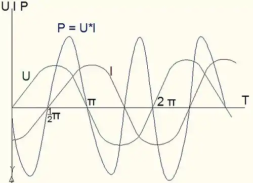 La suma algebraica de dichas sumas positivas y negativas da una potencia resultante nula, fenómeno que se explica conceptualmente considerando que durante las alternancias positivas el circuito toma energía de la red para crear el campo magnético en la bobina; mientras en las alternancias negativas el circuito la devuelve, y a dicha devolución se debe la desaparición temporaria del campo magnético. Esta energía que va y vuelve de la red constantemente no produce trabajo y recibe el nombre de "energía oscilante", correspondiendo a la potencia que varía entre cero y el valor (Umáx*Imáx)/2 tanto en sentido positivo como en negativo.