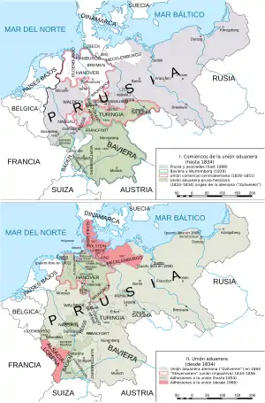 II. (abajo) Zollverein a partir de su formación en 1834.