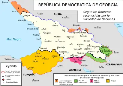 El gobierno soviético forzó a Georgia a ceder varias provincias georgianas históricas a Turquía (la provincia de Tao-Klardsheti y parte de la provincia de Batumi), a Azerbaiyán (la provincia de Ereti/Sainguilo), a Armenia (la región de Lore) y a Rusia (la esquina noreste de Khevi, en Georgia oriental).
