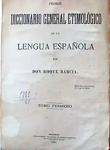 - Primer diccionario general etimológico de la lengua española. 5 vols. Madrid. 1880-1883.