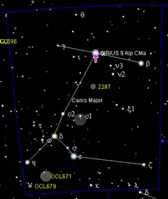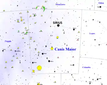 ![]() Ubicación de Sirio en la constelación de Canis Maior. | ||