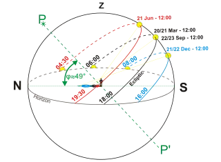 Wikcionario tiene definiciones y otra información sobre solsticio.- «Solsticios de invierno y verano», numerosos gráficos sobre la geometría de los solsticios.