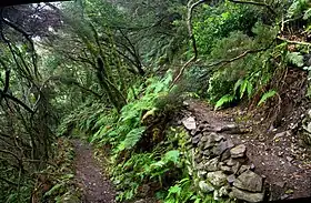 - Laurisilva: 500-1000 m: Se trata de un bosque denso de grandes árboles, herederos de la flora de la Era Terciaria, que crecen en zonas de abundantes nieblas y lluvias frecuentes. Las especies vegetales superiores que abundan son laureles, tilos, viñátigos, barbusanos, y otras de menor tamaño como el bicácaro, la cresta de gallo, la corregüela y una gran variedad de helechos. Con respecto a la fauna, la laurisilva es el estrato más rico en invertebrados y con mayor porcentaje de endemismos, entre los que se encuentran lombrices, moluscos y sobre todo artrópodos. Dentro de la fauna vertebrada hay que mencionar algunas especies de murciélagos y dos aves endémicas en peligro de extinción como son las palomas turqué y rabiche.