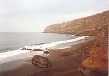 Las costas son, por lo general, accidentadas y abruptas, aunque lo son más en la zona norte que en la sur. No obstante 67,14 kilómetros de la costa tinerfeña lo representan playas, solo superada en este aspecto por la isla de Fuerteventura.[53] En el litoral septentrional son frecuentes las playas de cantos rodados o de arena negra, mientras que en la vertiente sur y suroeste de la isla predominan las playas con arenas más finas y de tonalidades más claras.[46][48][49][nota 1]
