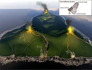 Tenerife es una isla de origen volcánico, cuya formación comenzó a gestarse en el fondo oceánico hace unos 20-50 millones de años.[46]