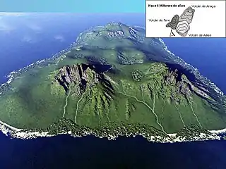 Tenerife es una isla en gran parte muy abrupta, de relieve formado por sucesivas erupciones volcánicas a lo largo de la historia, la más reciente de las cuales fue la del Chinyero en 1909.[41]