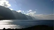 El macizo de Teno se encuentra en el extremo noroccidental. Al igual que en Anaga, se trata de una zona de estructuras desmanteladas y hondos barrancos que se han originado por erosión. Sin embargo, aquí los materiales son más antiguos (aproximadamente 7,4 m. a.). Destacan la montaña de Gala que con 1342 metros representa la mayor altitud. El paisaje más singular de este macizo se encuentra en su costa sur. Se trata de los acantilados de Los Gigantes, con paredes verticales que llegan a alcanzar en algunos puntos los 500 metros de altura.[46][48][49]