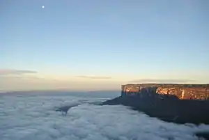 El tepuy, o menos aceptado tepui,[1] es una clase de meseta especialmente abrupta, con paredes verticales y cimas relativamente planas (aunque no en todos los casos) característica del escudo guayanés, principalmente en la zona de la Gran Sabana venezolana. Suele estar compuesto de cuarcitas y areniscas con algunos lechos delgados de pizarra. Igualmente es posible encontrar estas singulares formaciones en menores cantidades y tamaños en el límite con los países vecinos como Guyana, Colombia y Brasil.