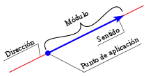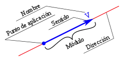 - Sentido: la orientación del segmento, del origen al extremo del vector. Puede ser positivo o negativo.