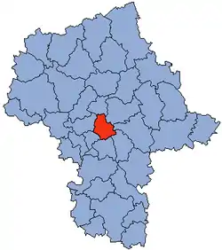 Divisiones administrativas del voivodato de Mazovia. En rojo, el powiat de Varsovia.