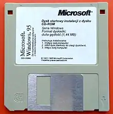 Windows 95 fue vendido en disquetes y en CD-ROM. En la versión en disquetes se incluían 13 discos y se utilizaba un formato no estándar conocido como DMF el cual les permitía almacenar una capacidad mayor a la normal de 1440 KiB. La versión en CD-ROM ofrecía una selección de accesorios y complementos multimedia, además de algunos controladores de dispositivos, juegos y versiones de demostración de algunos programas ofrecidos por la compañía.