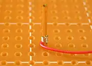 Las partes electrónicas a veces son conectadas en zócalos, que a su vez están unidos con cianoacrilato o adhesivos de silicio, a pequeñas placas de fibra de vidrio epóxicas. Los zócalos tienen postes cuadrados, frecuentemente de 0.025 pulgadas (635 micrómetros) de arista, una pulgada (25.4mm) de altura y con un espaciado de 0.1 pulgadas (2.54mm). Los mejores postes están hechos de una aleación de berilio y cobre, con una capa de 25 micropulgadas (635 nanómetros) de oro para prevenir la corrosión. Los postes más baratos están hechos de bronce con una capa de estaño.